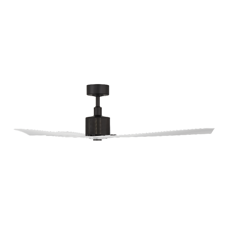 The Spinster 60-inch ceiling fan showcases an elegant housing adorned with miniature perforations, imparting an industrial charm to its design.