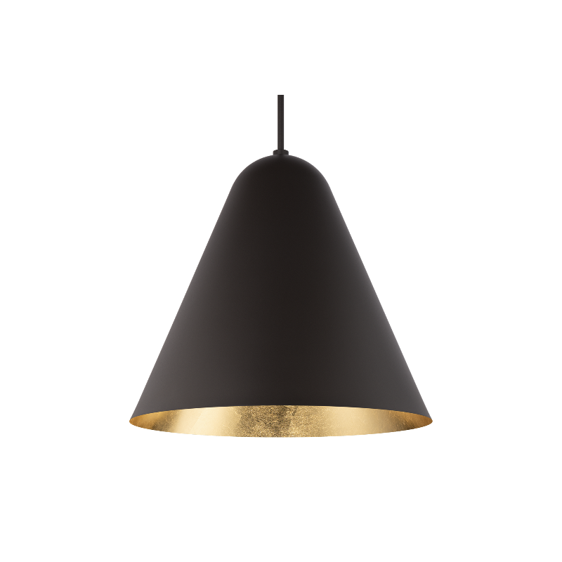 Industrial charmer. Elegantly minimalistic, this pendant light is defined by a sleek dome silhouette Adorned with luminous gold leaf inside, it masterfully unites design and purpose as it delivers a focused pool of downward illumination.