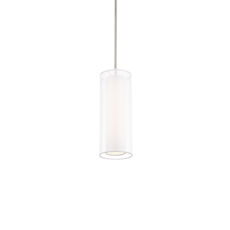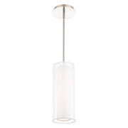 A diaphanous shade provokes the imagination of this elegant shade-in-a-shade design. Creating soft light with a beautiful sophisticated expression of cylindrical form, the outer chiffon shade envelops white fabric diffuser.