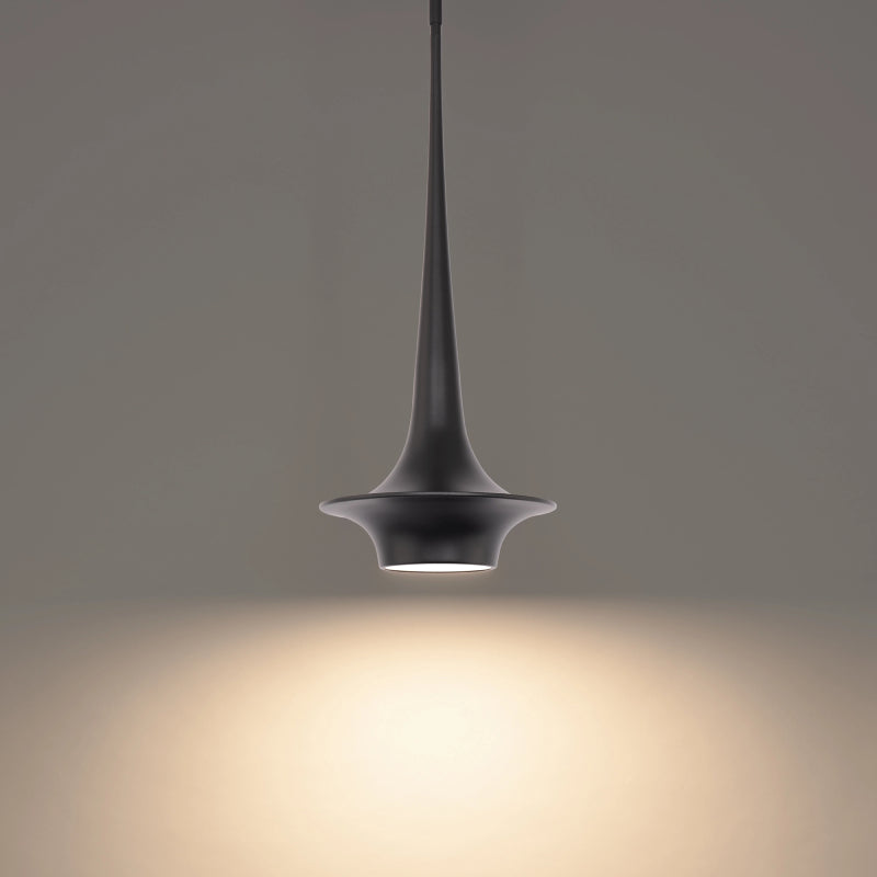 Shapely sophistication. An elongated trumpet is accented by a concave etched diffuser that projects a perfect spectrum of warm illumination.