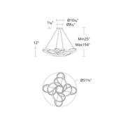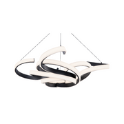 Flower child. Swirling in the air, graceful ribbons form a blossom silhouette when observed from below. Integrated LEDs artfully illuminate this sculptural wonder, creating captivating highlights and subtle, tasteful shadows.