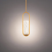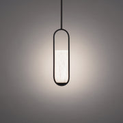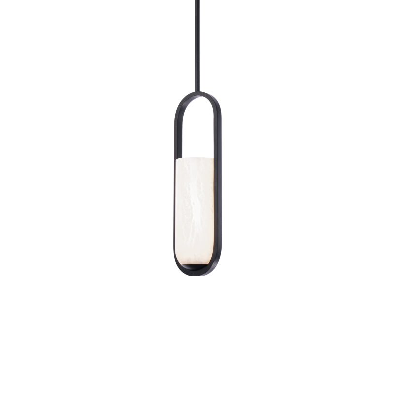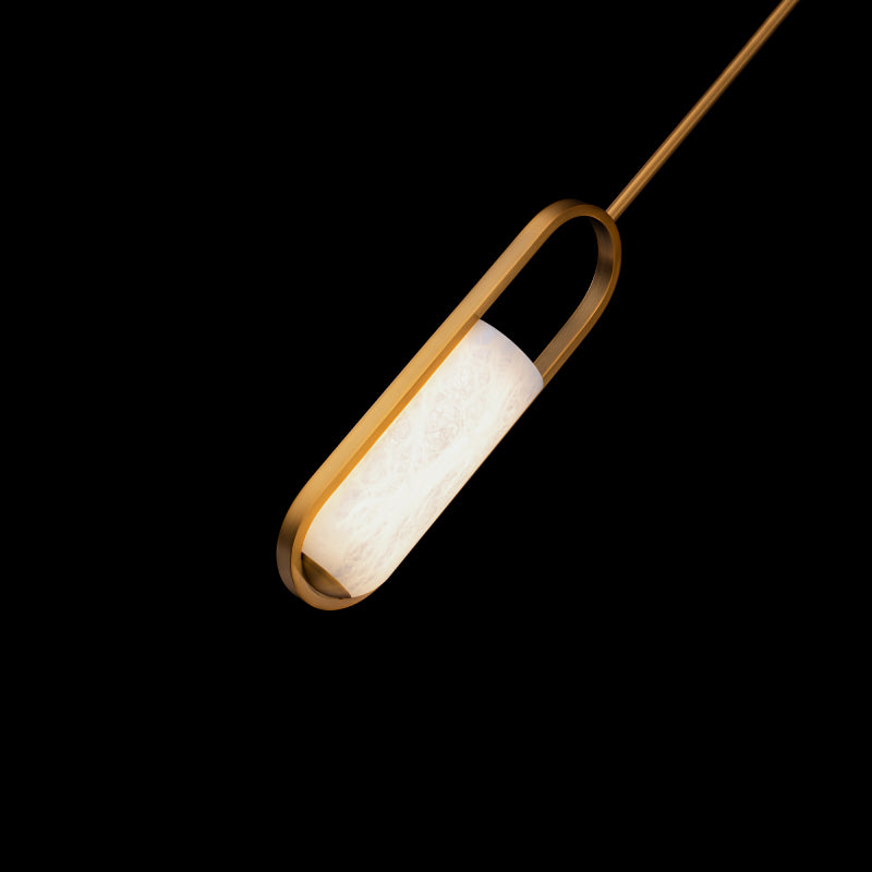 Gentle luminosity. A dynamic elliptical silhouette is softened by an alabaster shade whose variegated beauty is brought to life in a soothing glow from integrated LEDs.
