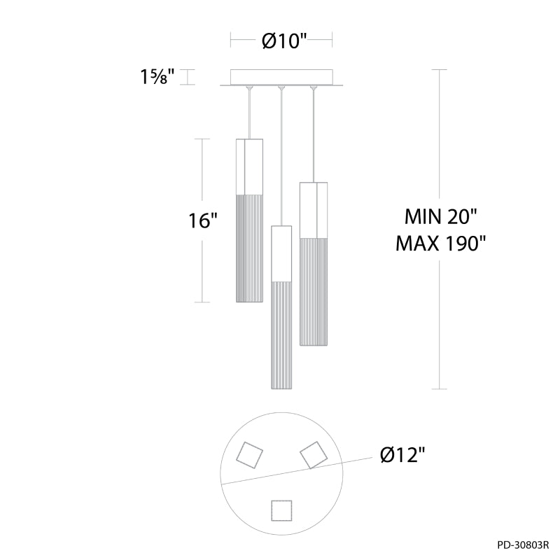 Modern Forms PD-30803R Cinema 3-lt 12" LED Pendant