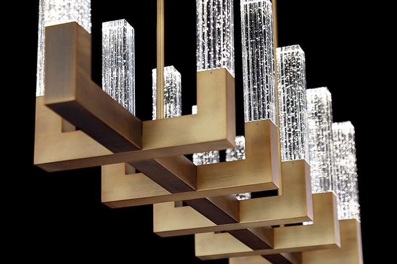 Luxuriously finished, Cinema makes a modern statement that’s right in line with the latest trends. Painstakingly V-cut seeded crystal adds understated glamour when it fills with light sourced from high-performance LEDs. With a variety of styles in the family, Cinema creates a matching lighting environment that can pull multiple rooms together.
