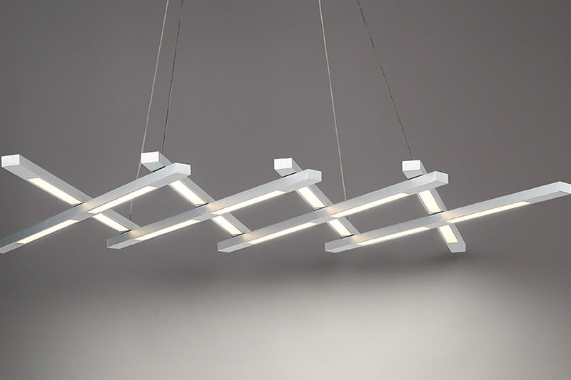 A customizable design that can contract or expand into the exact shape you want, Scissors cuts a fine figure in dining rooms, museum display areas, hotels and more. Finely crafted strips of extruded aluminum are affixed without the appearance of any fasteners for a finished appeal, while cutting-edge LEDs create a smooth, even illumination that’s consistent across each section of the design.
