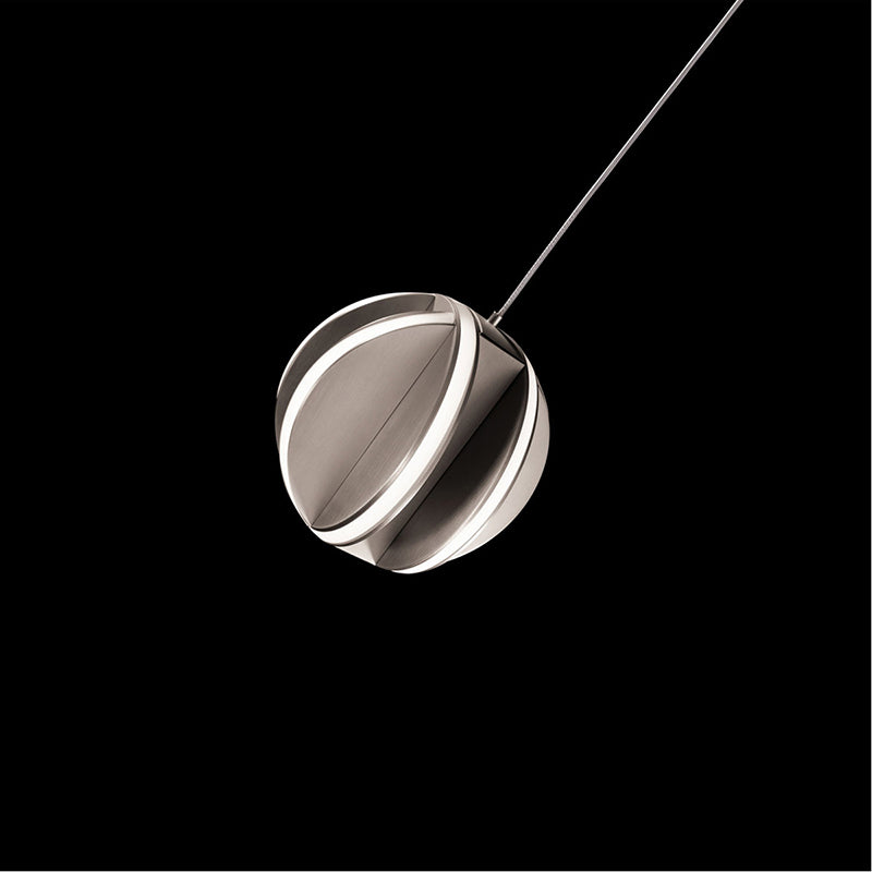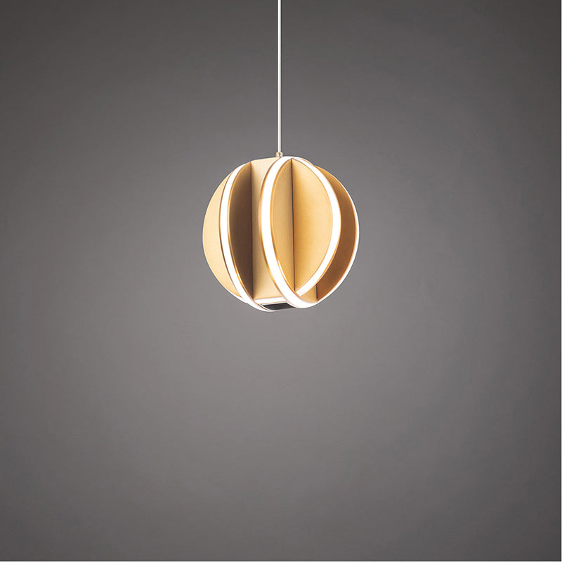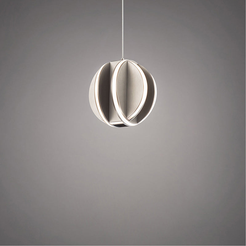 Elevate this decorative luminaire to raise the bar for modern lighting. Intersecting bands on a sphere reveal beautiful edge lighting.
