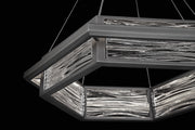 The rhythm of moonlight on the sea is captured within the molded glass lens floating inside the frame. Integral LEDs backlight the glass for a stunning luminous effect, like reflections of moonlight on waves.