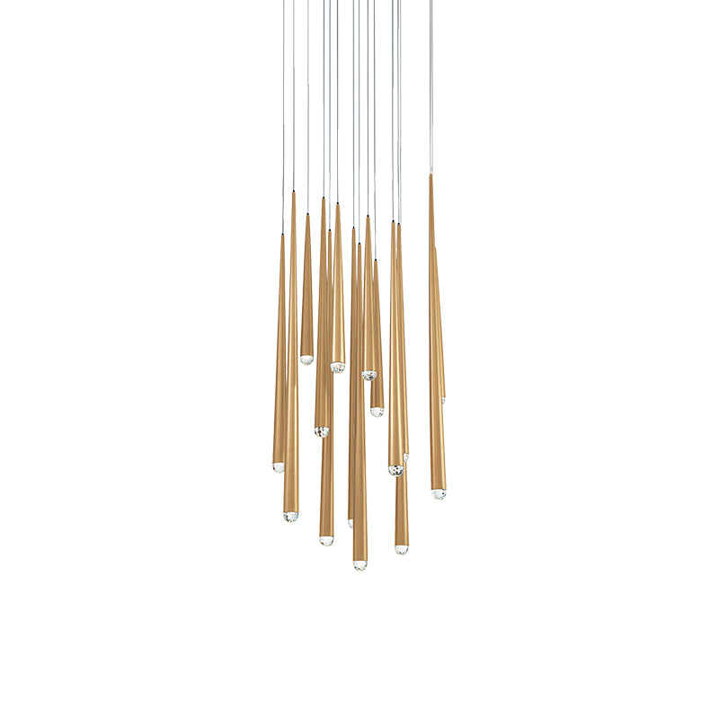 A new aged brass finish updates the original Cascade design for a more refined take on minimalist glam. Each pendant illuminates bountifully while the jeweled crystal caps, expertly hand-cut, punctuate each piece like a chic yet understated exclamation of luxury.