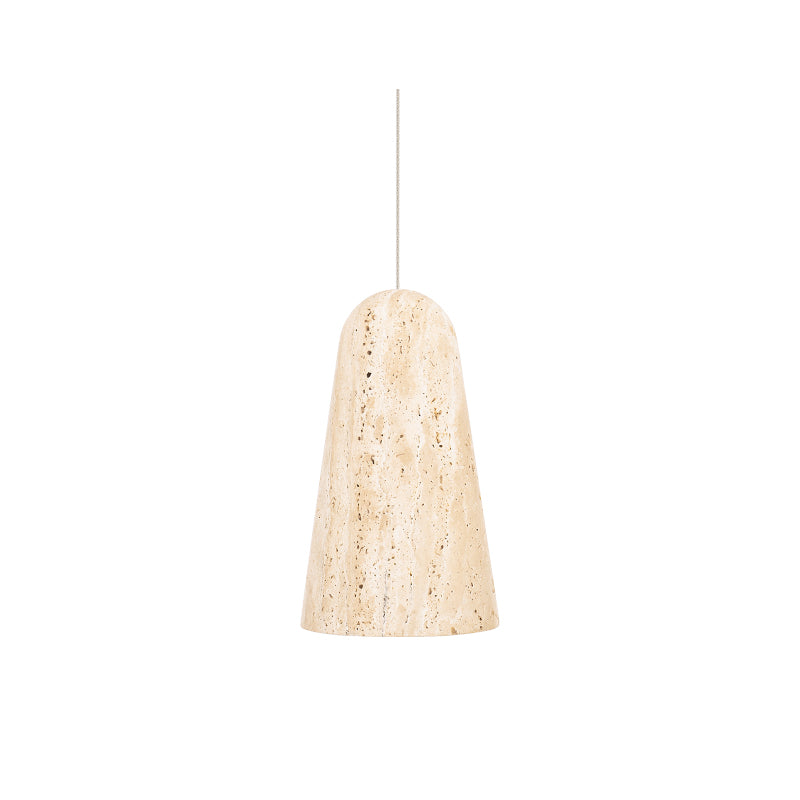 The lovely Pompeii pendant features a natural stone cap is complemented by a wood top, creating a serene and organic material palette. The calming effect is enhanced by the color temperature adjustable, diffused LED downlight emitted from the pendant.