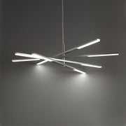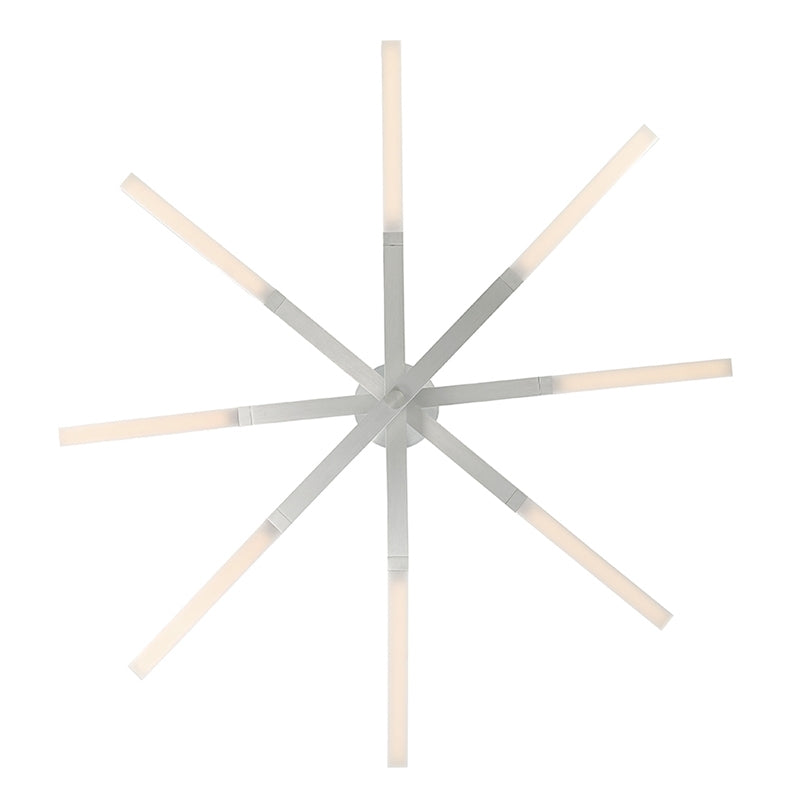 The Stacked Chandelier by Modern Forms brings modern design and lighting together in a dynamic abstract form. This design, similar to that of helicopter rotors, features a series of Aluminum blades whose ends are accented by Opal silicon diffusers and lit by integrated LEDs.