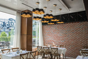 Inspired by Piet Mondrian's work with simplified geometric elements, Marimba offers abstract art with upscale appeal achieved with fine metallic leaf details, aircraft cable power lines and silk screen LED light emitters for perfect illumination perfect for luxury residential, commercial and hospitality spaces.