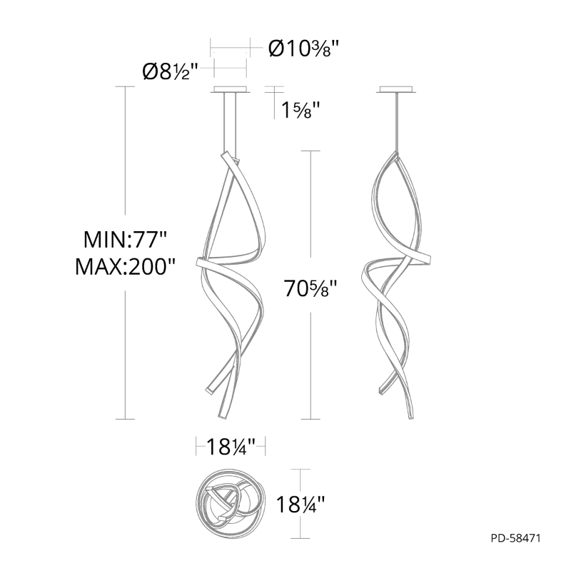Entangled. Spiraling around its wavy axis, this luminaire is an artful sculpture by day and a soft light source at night.