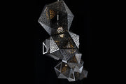 Riddle’s intricate pattern and joinery is no joke. Our expert craftsmen use a special wet-etching process to create a textural motif that looks like a mash up of Sol Lewitt and the complex geometric shapes of Islamic architecture. Inside, an acrylic diffuser shields the high- performance LED modules to create a glare-free illumination, which peekaboo's through the etchings and creates stunning patterns on the nearest surface.