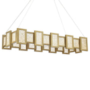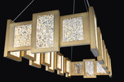 An elegant chandelier combining energy efficiency with lustrous metal finishes and gold encased art glass panes. Soft and even illumination from an innovative design only made possible with the latest in LED technology.