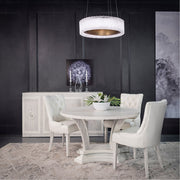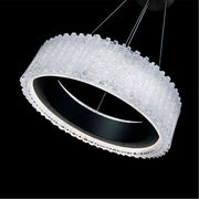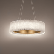 Behold a symphony of grace in the curtains as crafted by artists to capture movement when viewed from different angles. The dimensional inlaid design will finely suit a luxurious space. This showstopping pendant reveals an elegant presence visible to all.
