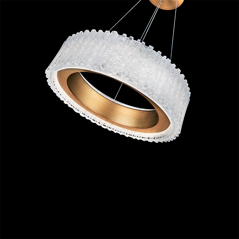 - Construction: Extruded aluminum body with reclaimed crystal shade and acrylic diffuser