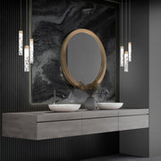 Elegant artisanal sparkles. Held aloft, long-lasting LEDs provide functional downlighting. A sleek mini pendant that works by itself or in multiples.