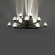 Geometrically concentric spheres round out this chandelier with conversation starting elegance and intrigue. This charming design deploys laser-etched spherical shades embraced by bobeches and arms, providing alluring ambience and aesthetic that delights.