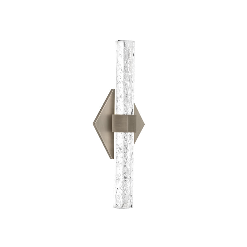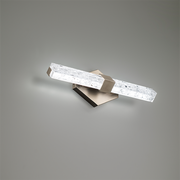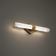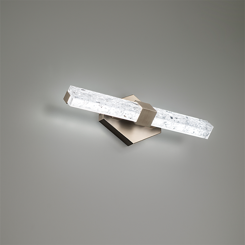 Artisanal reclaimed crystal shards glitter with ample ambient illumination. LEDs illuminate the crystal shards frozen within this dramatic bath sconce. Installs in either horizontal or vertical directions depending on your needs.