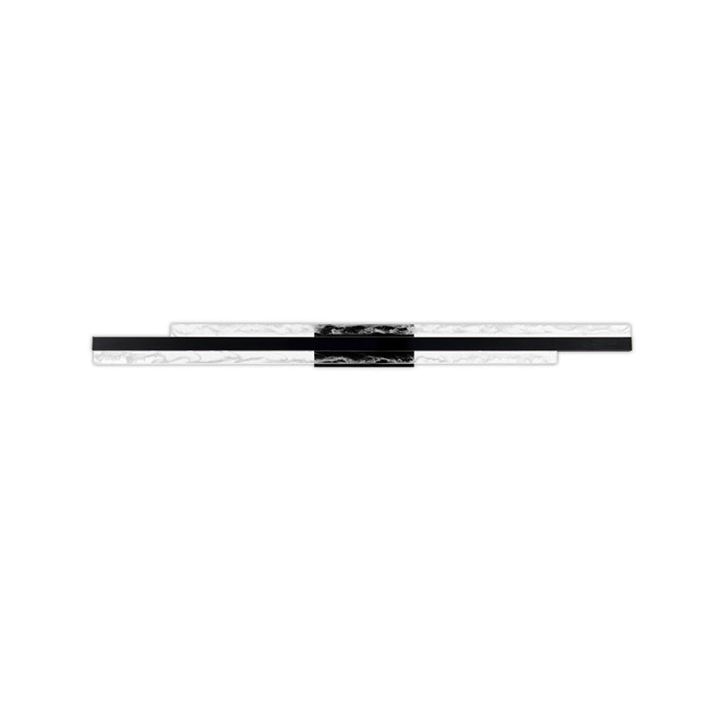 Asymmetrical elegance in lumosity. Double blocks of cloudy acrylic sandwich a metal bar. Artisan crafted for all orientations around your vanity in a fine bath.