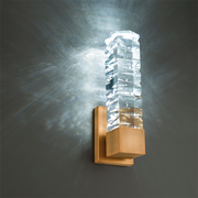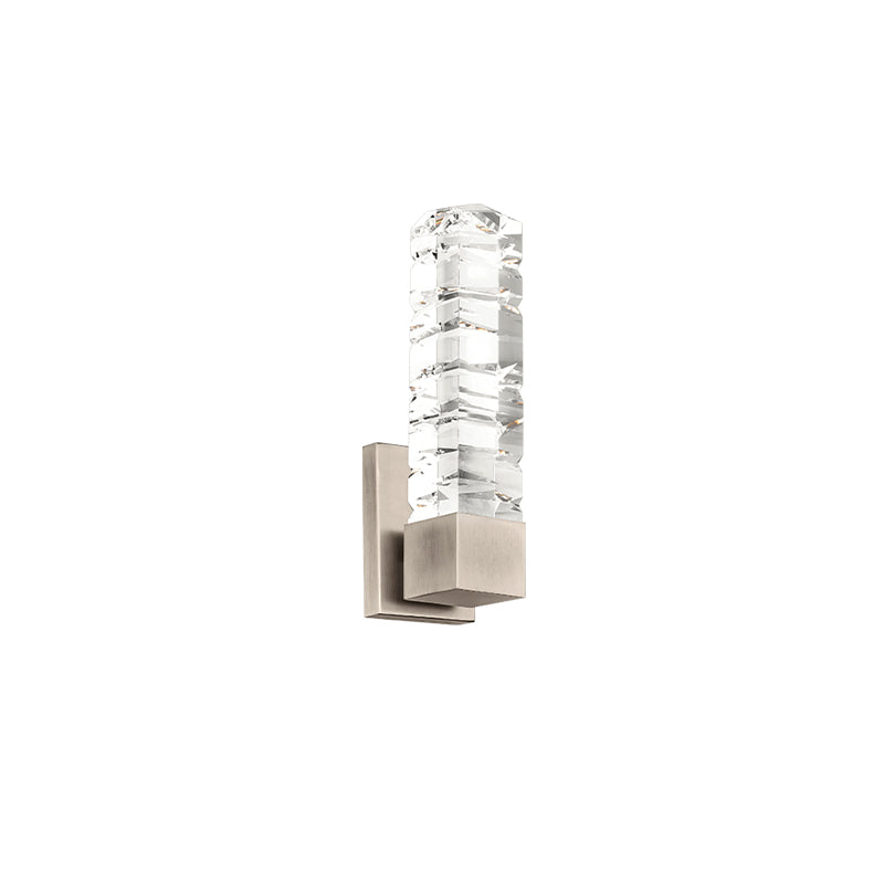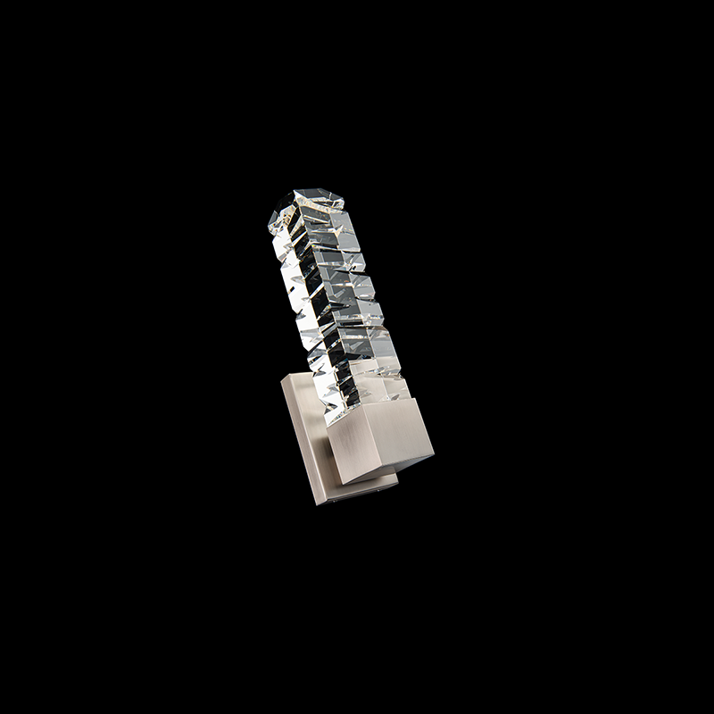 A chiseled luminaire with a captivating sculptured texture. This design features solid faceted crystal spears dramatically carved for a prismatic impact. A luxury design engineered for enduring beauty and longevity.