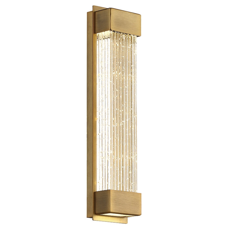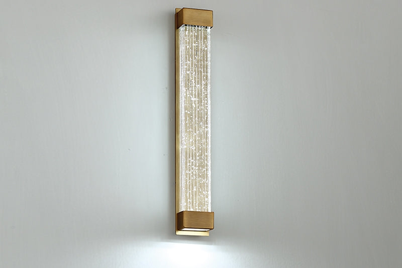Featuring an aged brass finish that’s right in line with the latest trends, Tower brings understated luxury to every setting. The painstakingly V-cut seeded crystal inset adds a touch of glamour. With LEDs to light the crystal from both ends, plus a bonus hidden up light or downlight, this sconce delivers the best of both worlds—warm ambience and quality indirect illumination.