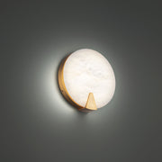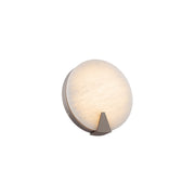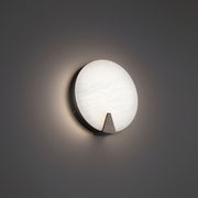 Add luxurious character with this curvaceous sconce. Enjoy rich tones and natural veining textures of authentic Spanish alabaster. The clean spun aluminum profile reflects a minimalist architectural in aged brass or antique nickel.