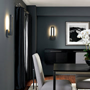 A clean, sophisticated design thatβs finely tuned to the minimalist aesthetic, Forq brings austere refinement to your everyday decor. When you turn it on, a warm aureole illuminates on the wall surface behind it, creating an elegant contrast of materials and shapes. State-of-the-art LEDs account for that with rich, energy-efficient light that lasts and lasts.