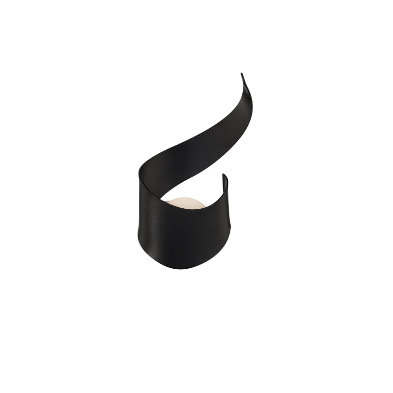 A timeless twist. Curving upwards, a handcrafted, bent metalwork ribbon conceals an LED light source that delivers warm, upward and downward illumination to its surroundings.