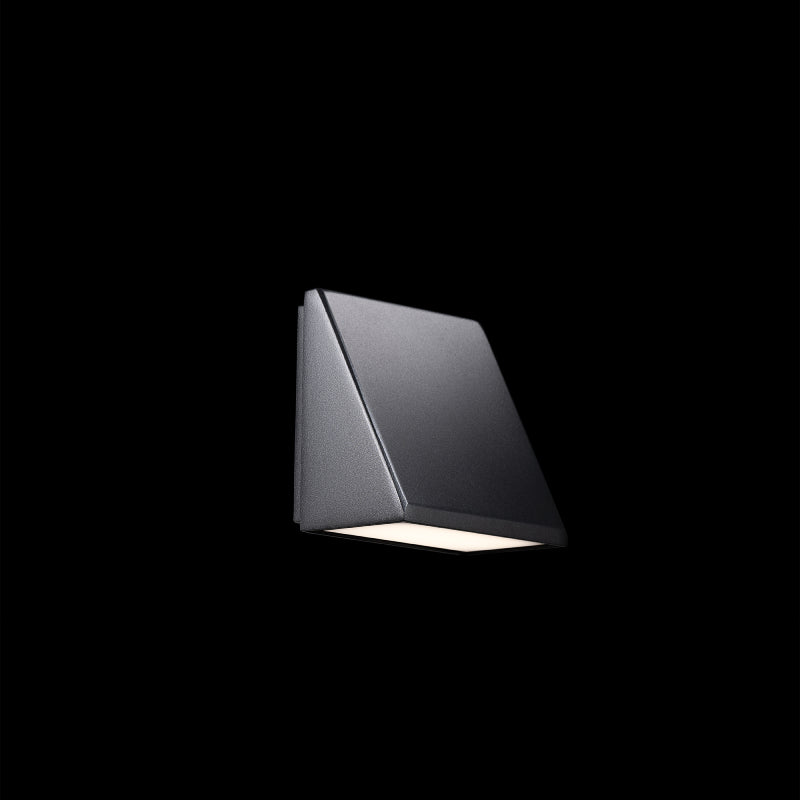 Fundamental geometry. An opaque triangular shade shelters LED light sources, providing diffused downward illumination while protecting the nighttime sky.
