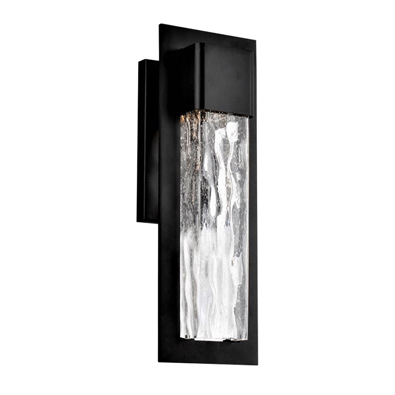 A contemporary outdoor sconce inspired by the handmade colonial era glass window panes. The seeded and hammered glass is captivatingly framed and weather resistant finished.