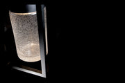A refreshing look for refined tastes. A raindrop glass cylinder suspended within in an architectural frame. Beautifully illuminated with LED down lighting for a magical appearance of crystallized effervescence. Dark sky orientation preserves observation of star filled skies.