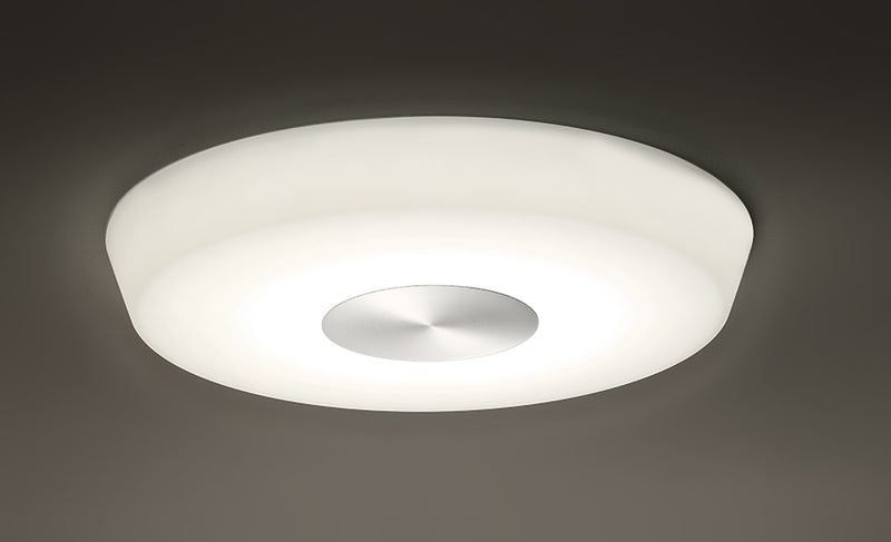 - Opal glass with interchangeable discs in polished and brushed nickel