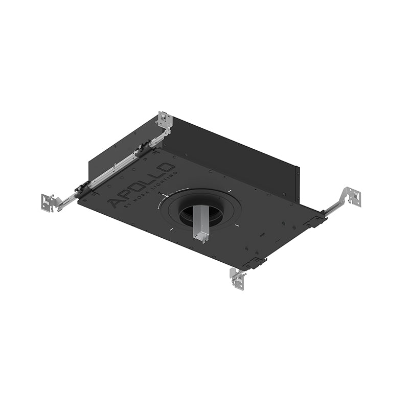 3" Apollo IC Air-tight new construction housing for use with 3" Apollo flanged and flangeless trims. Shallow 4-1/8" housing includes the adjustable LED mechanism and reinforced bar hangers. A detachable roof allows for serviceability from below and above the ceiling.