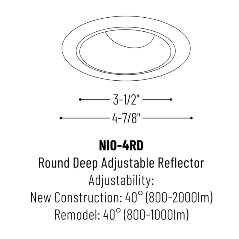 Nora NIO-4RD/10 4" Iolite Round Deep Adjustable Reflector Trim - 1000 Lumens