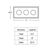 - Construction: The aluminum face plate is a flanged seamless stamped metal. Each LED gimbal adjusts independently at 40° with 350° rotation