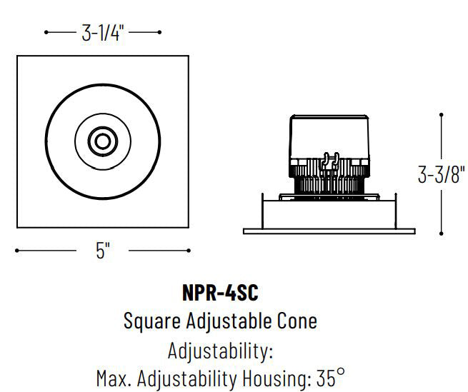 Nora NPR-4SCCDX 4" Pearl LED Square Adjustable Cone Retrofit, Comfort Dim