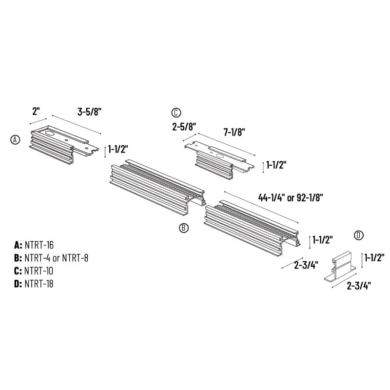- Mounting: Each installation will vary based on ceiling make up. All mounting hardware is provided for installation finishing to drywall or suspended ceilings. Hardware included may not meet all installation requirements. Additional framing may be required in some hard ceiling applications. Spacers are supplied with NTRT-4 and NTRT-8 to adjust for thickness of single or 2-circuit track.