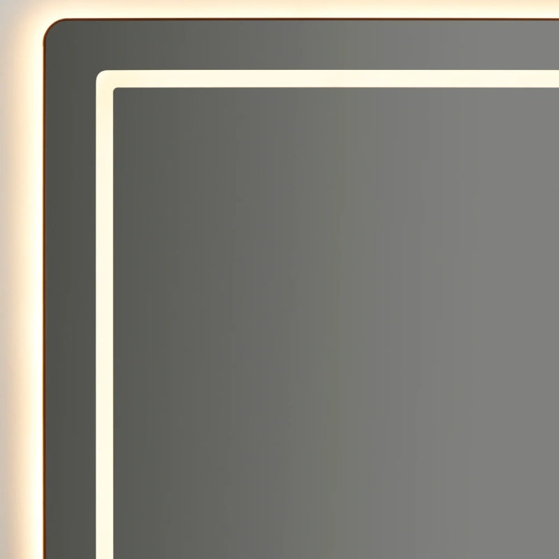 - Experience the subtle allure of ambient backlighting that surrounds the mirror, casting a soft, inviting glow that enhances your space’s ambiance