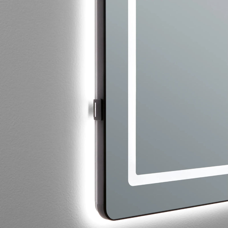 - Experience the subtle allure of ambient backlighting that surrounds the mirror, casting a soft, inviting glow that enhances your space’s ambiance