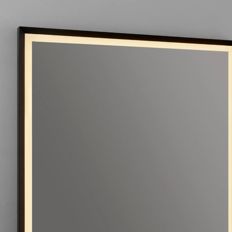 The Dusk Lighted Mirror showcases sophistication and simplicity with its square matte black aluminum frame. It effortlessly complements any decor with direct light emanating through a frosted glass interior frame like never before. Ideal for makeup application and grooming, this feature ensures your reflection is crystal clear and well-lit.