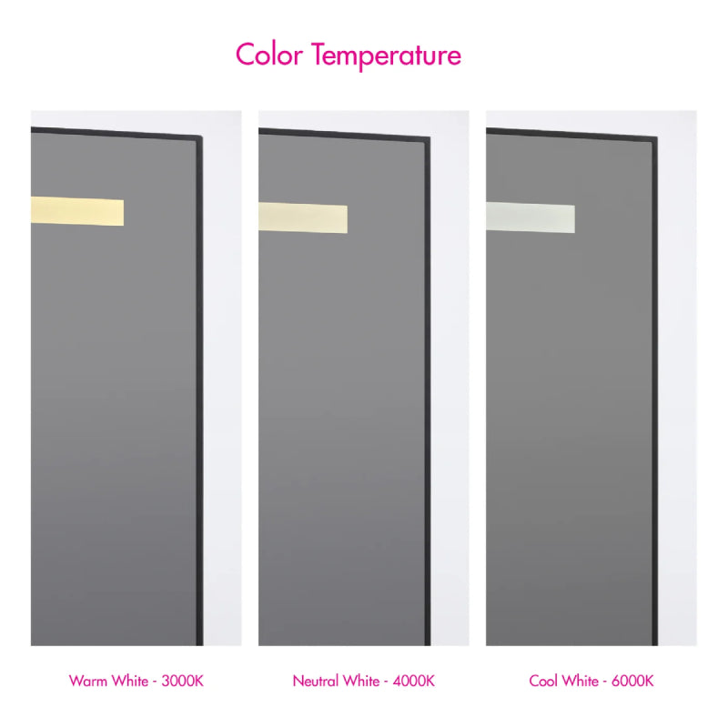 - Operate the mirror with ease using the lighted touch button located just above the shelf. Turn it on or off, select your desired color temperature (CCT selectable), and dim the light all by a simple touch of the button