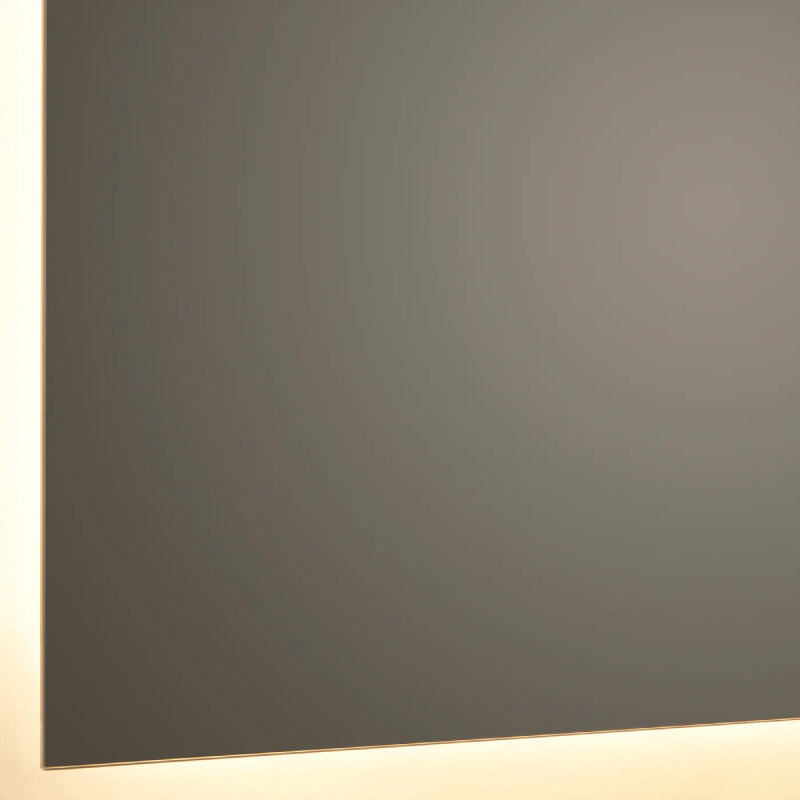 - A frosted glass edge backed by a plexiglas diffuser is not just a design element; it offers high-output direct light, perfect for precision tasks like makeup application and grooming
