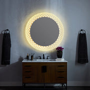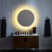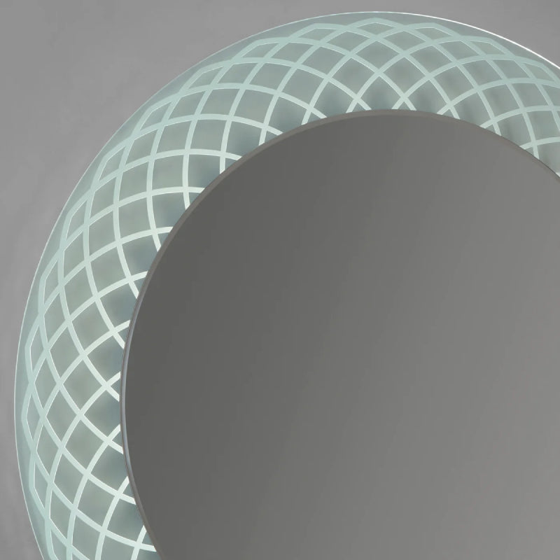 - The Perla LED Mirror is a true work of art. Its one-of-a-kind circular mirror with an etched glass frame is a testament to precision and sophistication, adding an aura of timeless beauty to any space