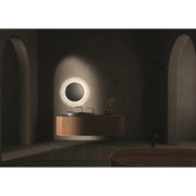 - Experience the subtle allure of ambient backlighting that surrounds the mirror, casting a soft, inviting glow that enhances your space’s ambiance