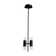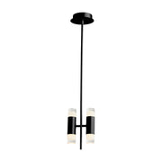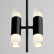 Each cylinder on the black Alarum 4 light pendant is capped with a CCT 3000k/3500k/4000k LED array diffused by a K9 crystal. A damp listing and cold-rolled steel housing allow this pendant to live in many spaces.