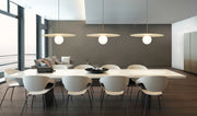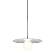 Bola Disc is a uniquely expressive LED Pendant system featuring a distinctive range of chromated disc reflectors that give the illusion of weightlessness by mirroring its surroundings. Available in 4 distinct sizes 12”(30cm), 18”(46cm), 22”(56cm), 32”(81cm), Bola Disc pairs an elegant globe diffuser made of opal glass with exquisitely polished stainless steel or aluminum discs in chrome, brass, rose gold.