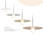- Materials: Aluminum or SS Disc, Opal Glass Globe, Fabric cord, Aluminum Stem, Steel Canopy