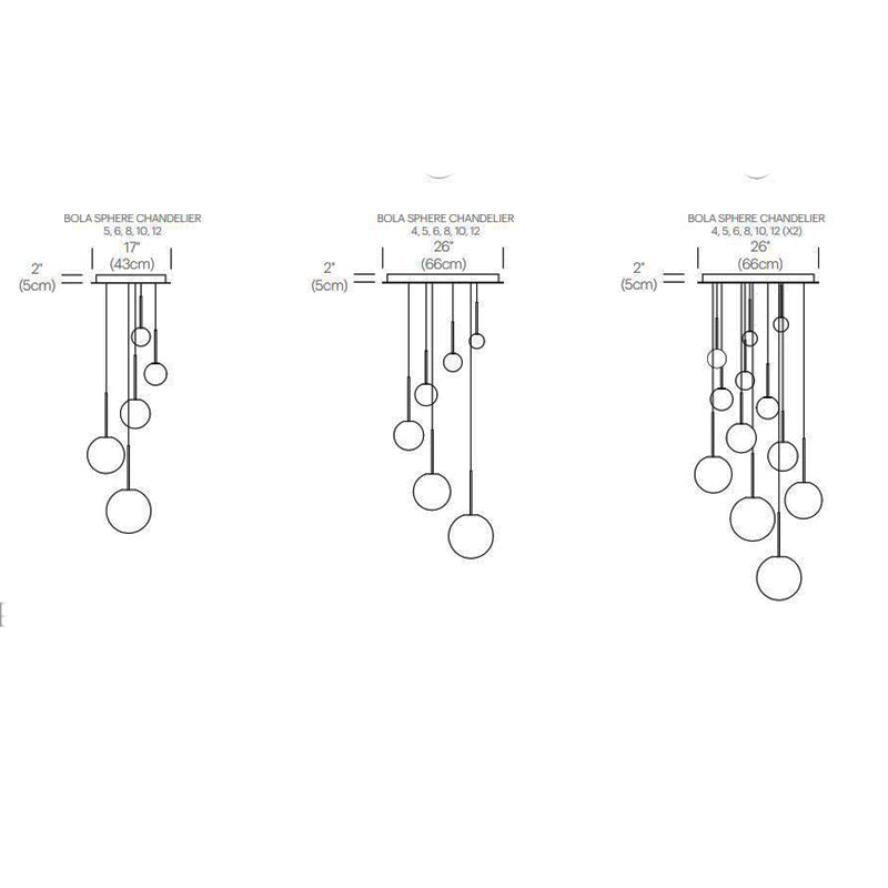 The Bola Sphere chandelier is the basic foundation of the Bola Collection, featuring an elemental interplay between post and sphere. Two sizes of canopy are available to accommodate Bola Sphere is also available in exquisite Chandelier groupings that allow mixing of globe sizes for stunning displays in any residential, contract or hospitality setting alike.