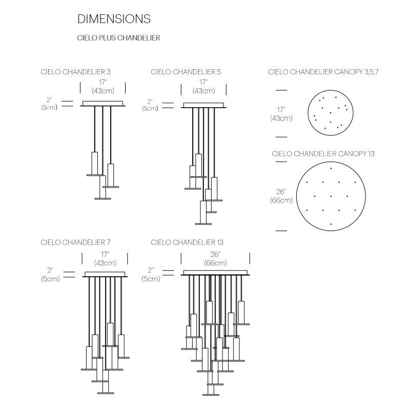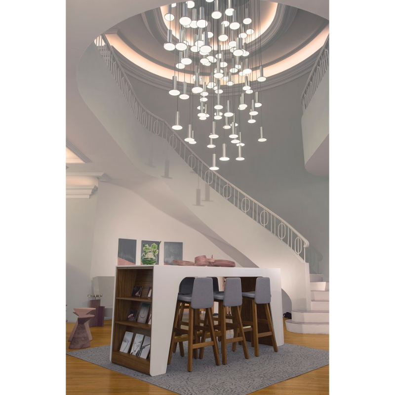 Cielo chandelier’s grouping of LED pendants provides perfectly balanced and warm illumination in a simple and expressive silhouette. Cielo Chandelier is available in 3, 5, 7 and 13 Cielo pendant configurations to accent any residential, commercial or hospitality setting.